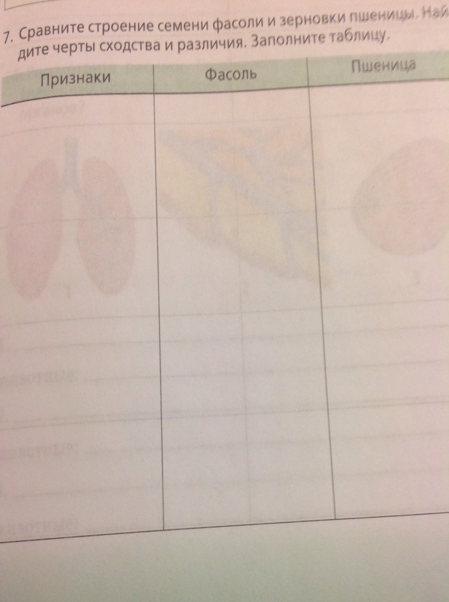Сравните строение семени фасоли и зерновки пшеницы. Найдите черты сходства и различия. Заполните таблицу. Помогите прошу очень нужно:)