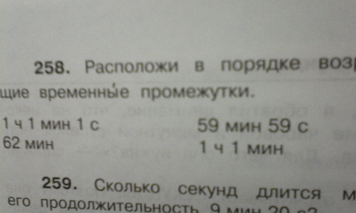 1) 62 мин > 1 ч 1 м 1 с > 1 ч 1 м > 59 м 59 с.