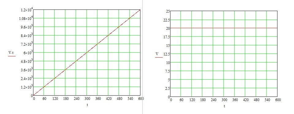 4. Автомобиль за 10 минут прошел путь 12 км. С какой скоростью он двигался? Постройте графики скорости и пути.