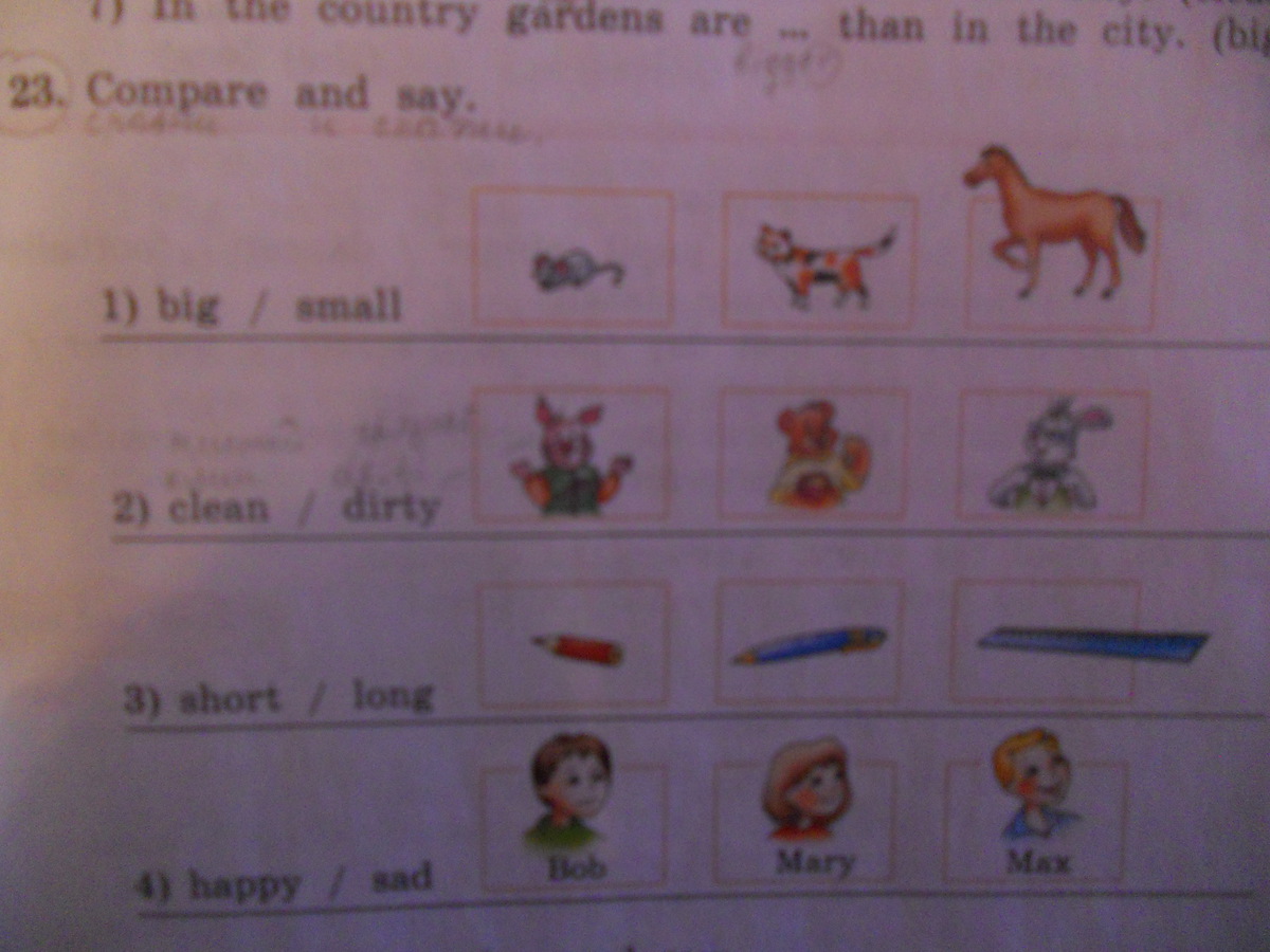 1) Mouse is small, Horse is big.