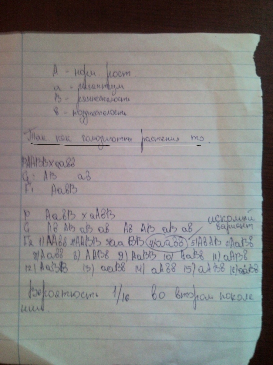 у овса нормальный рост доминирует над гигантизмом, а раннеспелость-над позднеспелостью. признаки наследуются независимо. скрещиваются раннеспелое растение с нормальным ростом с познеспелым гигантом. исходные растения гомозиготны. в каком поколении и с какой вероятностью появятся гомозиготные раннеспелые гиганты. как решить