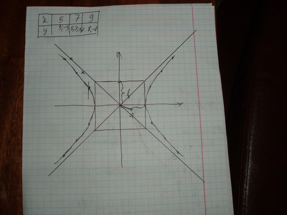 x^2/4^2-y^2/4^2=1-гипербола с параметром а=4;b=4