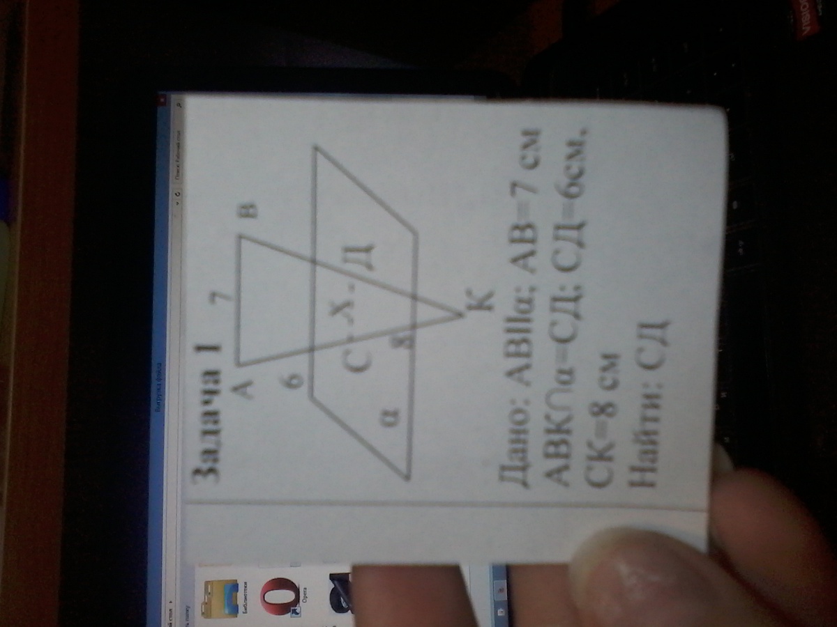 ABK подобен СДК по углам (общий угол + СД//АД(следствие о параллельности прямой и плоскости) )