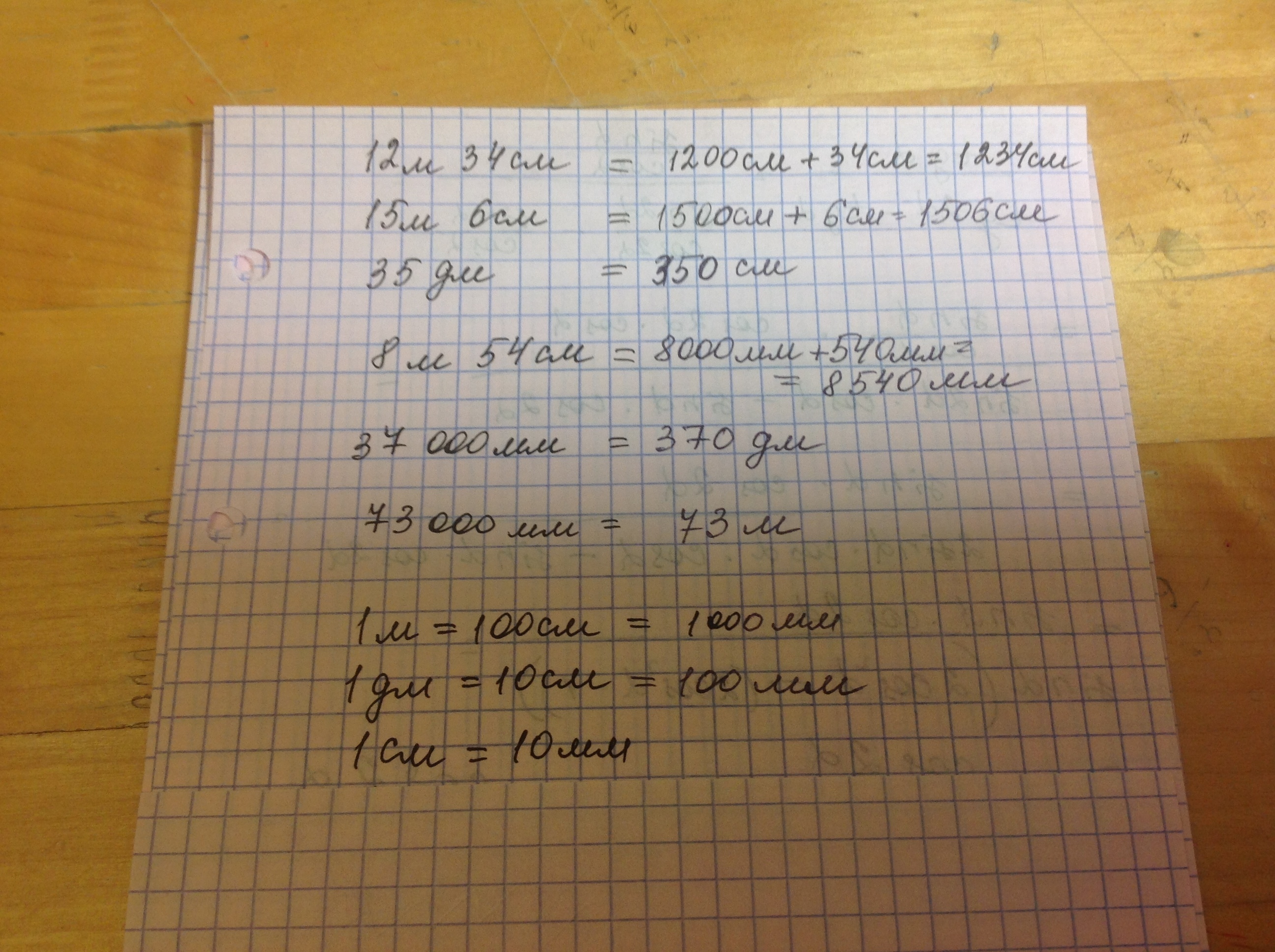 В см: 12 м 34 см; 15 м 6 см ; 35 дм;
