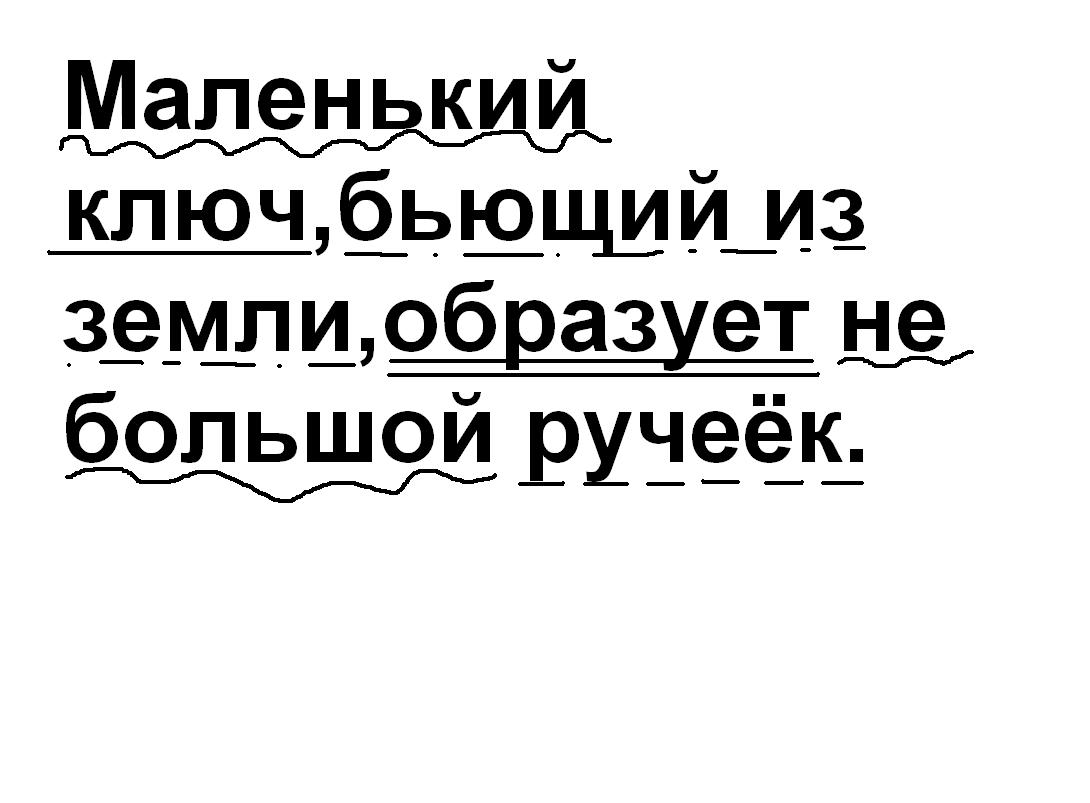 Сделайте синтаксический разбор предложения:Маленький ключ,бьющий из земли,образует не большой ручеёк.
