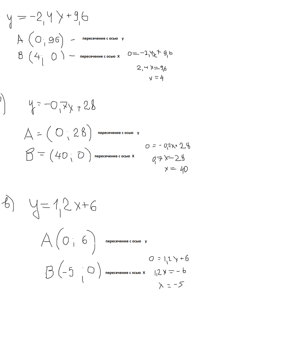 а)y=-2.4x+9.6