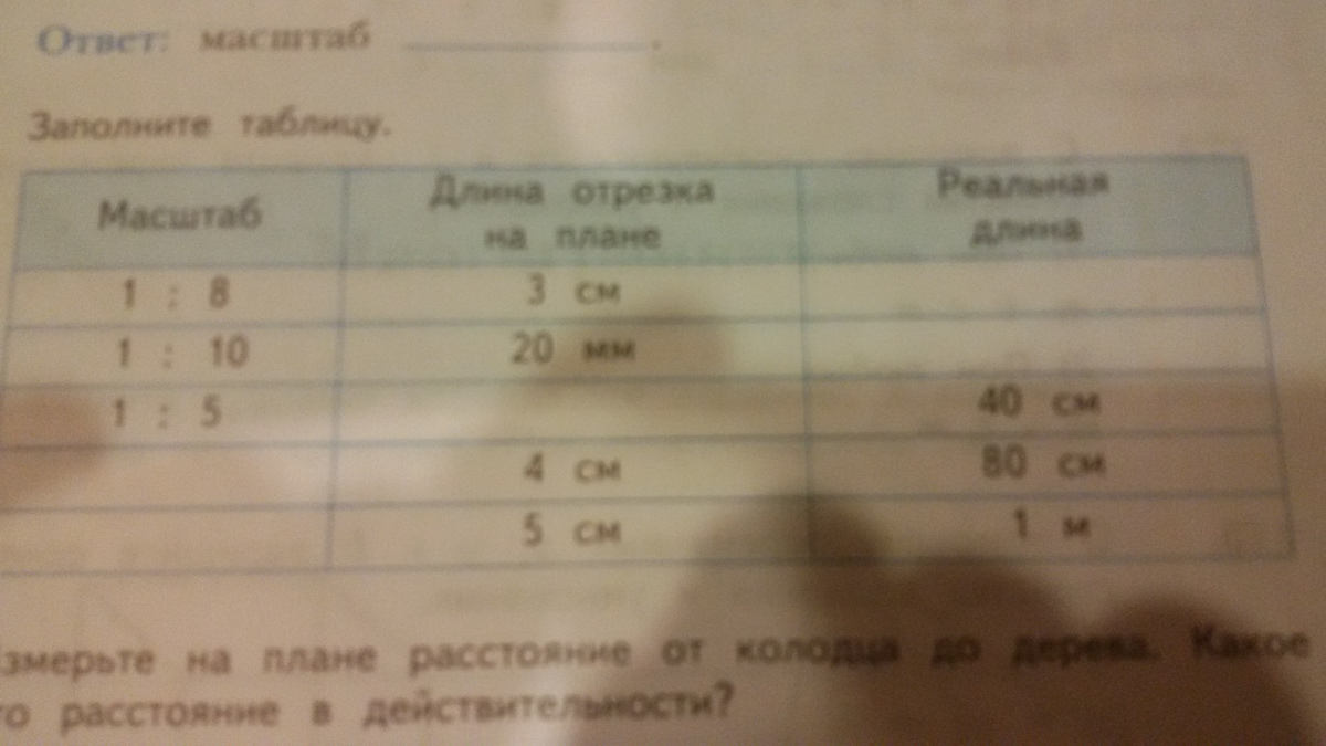 Масштаб--- это отношение длины отрезка на плане к длине отрезка на местности;решаем ,составляя пропорцию к каждому из заданий:
