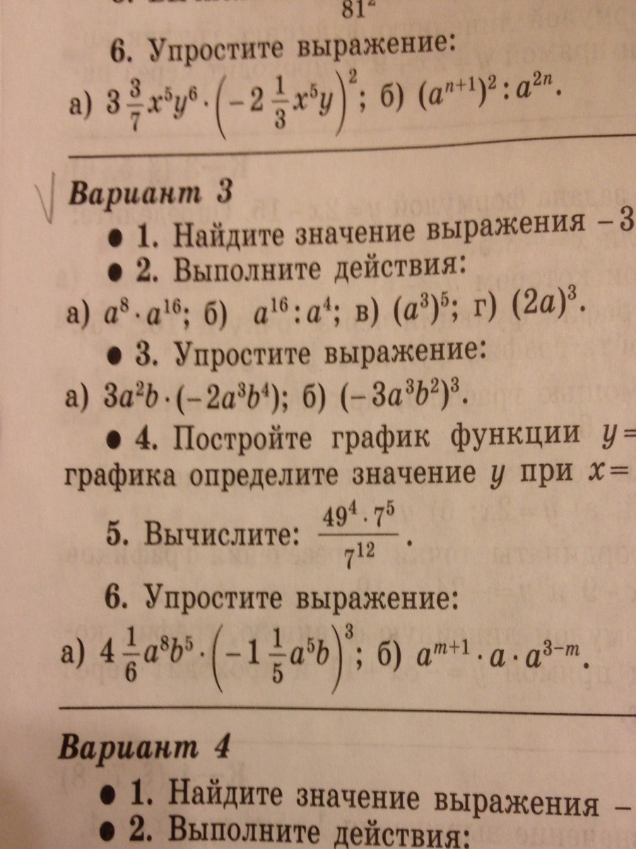 а)3а²в*(-2а³в^4(в 4-ой степени))=3а²в*(-2а³)*в^4=3*(-2)*a²*a³*b*b^4 = -6*a^5*b^5