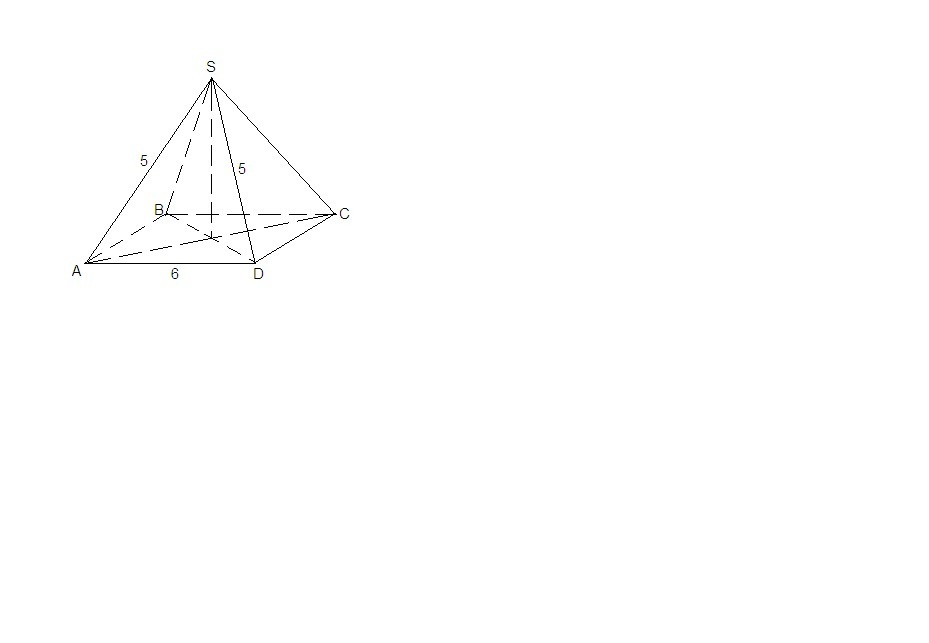 Стороны основания правильной четырехугольной пирамиды равны 6, а её боковые рёбра равны 5. Найдите площадь всей поверхности пирамиды