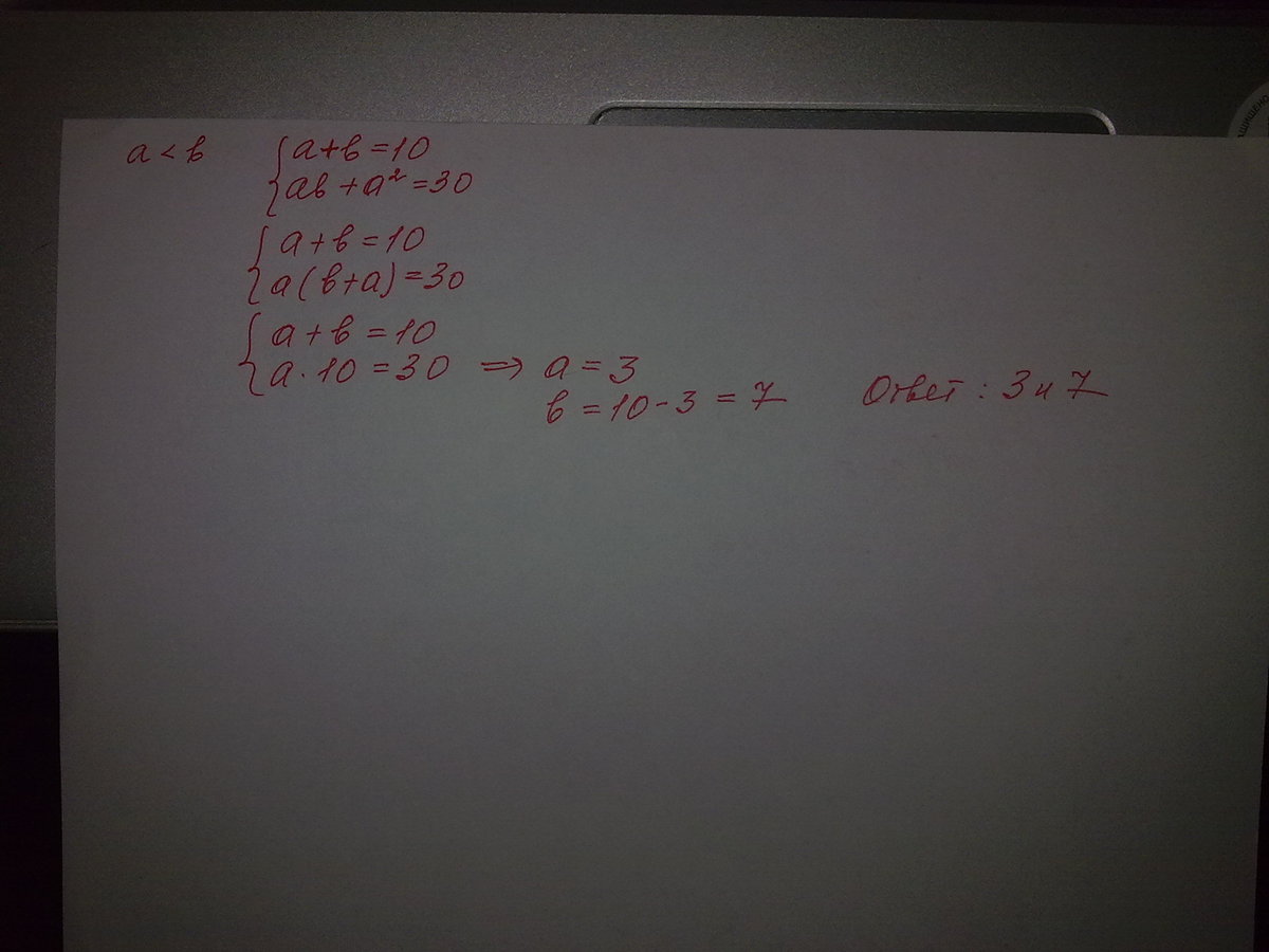Help!!!Плиз!!! Сума двох чисел дорівнює 10, а сума їх добутку й квадрата меншого числа дорівнює 30 Знайдіть ці числа