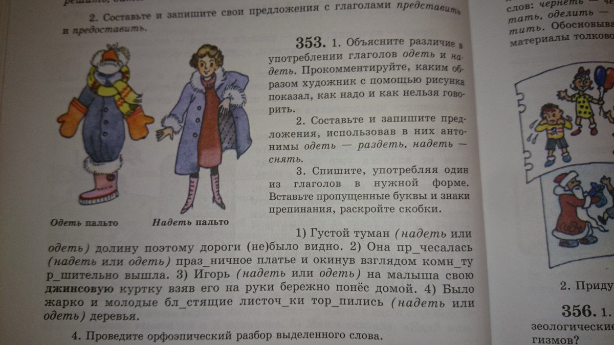 туман...одел;она....надела;игорь....надел;листочки торопились.....одеть