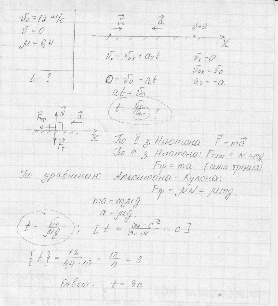через який час після початку аварійного гальмування зупиниться автобус який рухається зі швидкістю 12 м/с,якщо кофіцієнт тертя при авврійному гальмуванні 0,4???