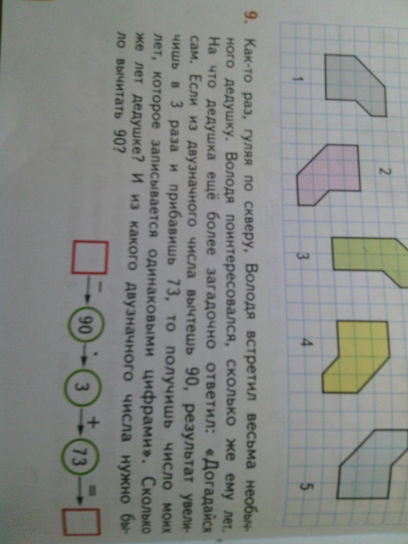 Сколько лет дедушке если из двухзначного числа вычесть 90 результат увеличить в 3 раза и прибавить 73 то получится число сколько лет дедушке .Из какого двух значного числа надо вычесть