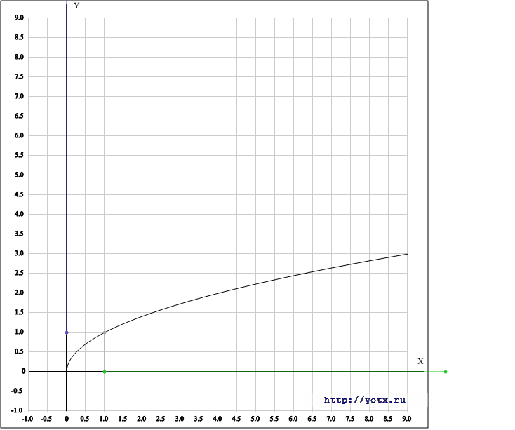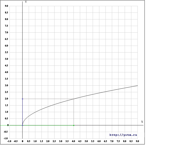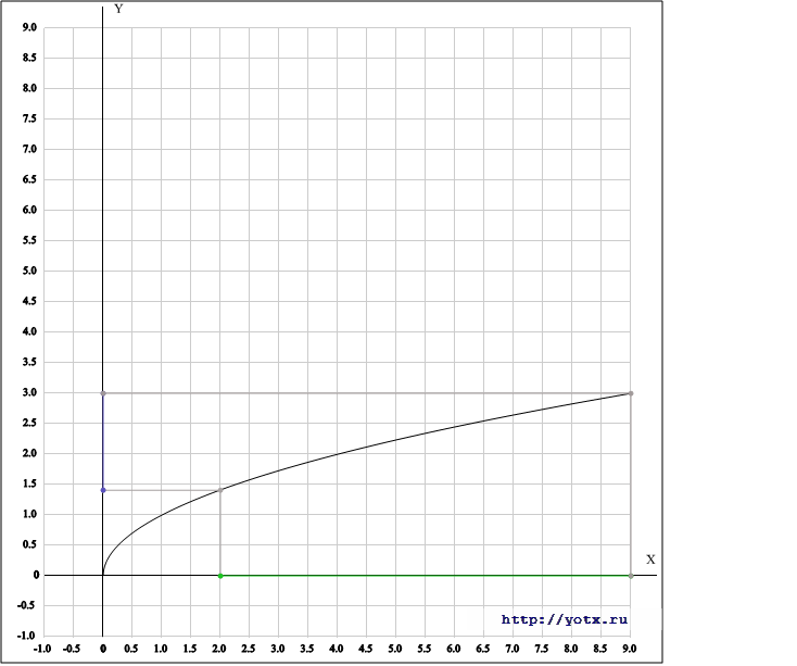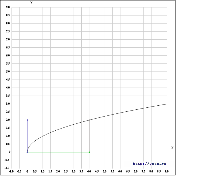 Используя график функции y=корень х, запишите промежуток, которому удовлетворяет переменная у, если: