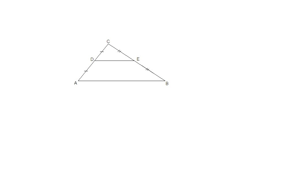 DE = 1/2 АВ по свойству средней линии, значит коэффициент подобия: