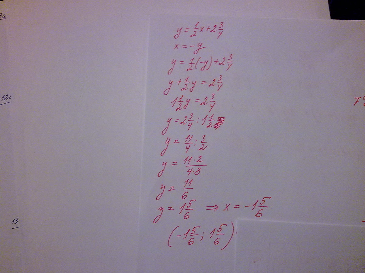 На графике линейной функции у=1/2х+2 3/4 найдите точку, абцисса и ордината которой- противоположные числа.
