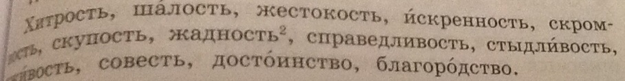 Хитрость, шалость жестокость. Там есть еще несколько слов 3-его скл.