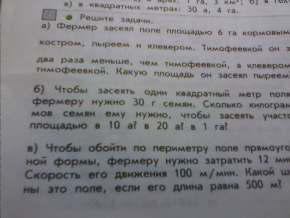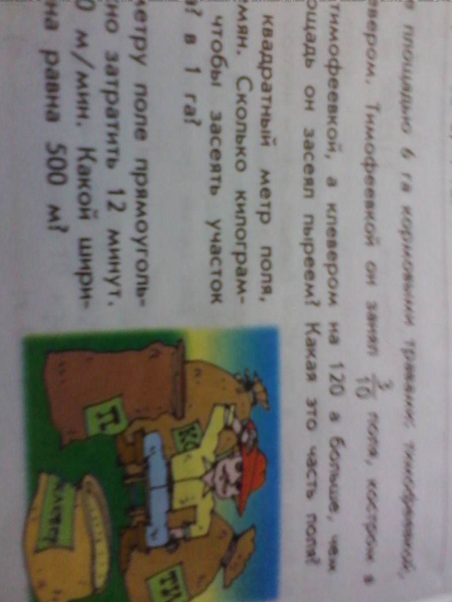 a) 6га=6*10000=60000м2. Найдем сколько засеяно тимофеевкой : 60000/10*3=6000*3=18000м2.