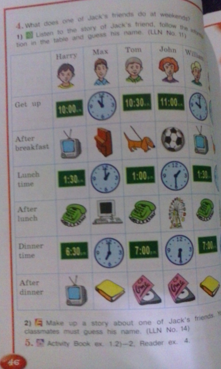 Max gets up at eleven o'clock.After Breakfast, Max plays the piano.Max dines in thirteen hours. After lunch, max plays computer games.Dines Max in nineteen hours.After dinner, Max reading a book
