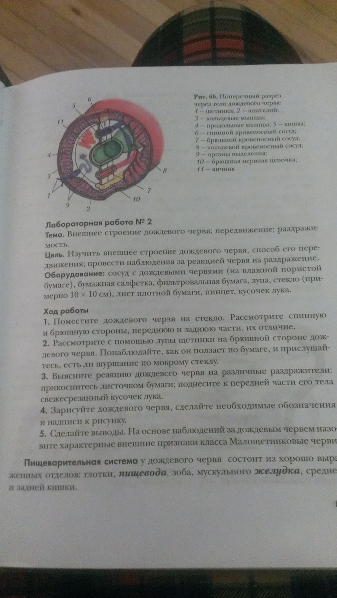 В передней части червя находится глотка потом ниже идет пищевод потом ниже зоб потом желудок и кишечник
