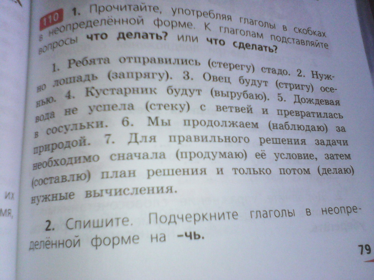 прочитайте употребляя глаголы в неопределенной форме. к глаголам подставляйте вопросы что делать? или что сделать?