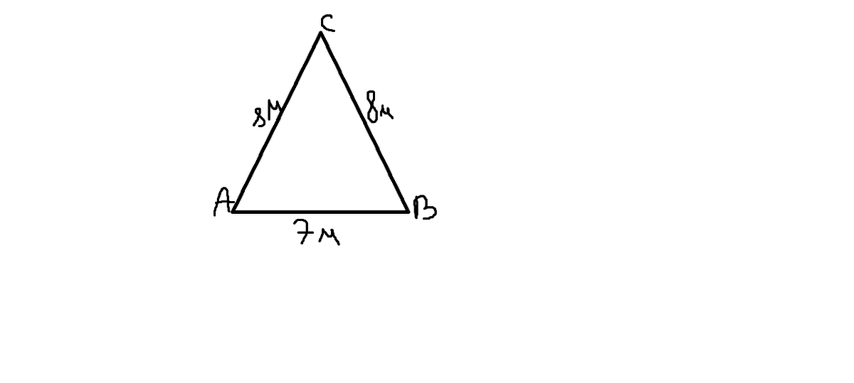 Дано: равнобедренный треугольник ABC, АВ=7 м, ВС=8 м.