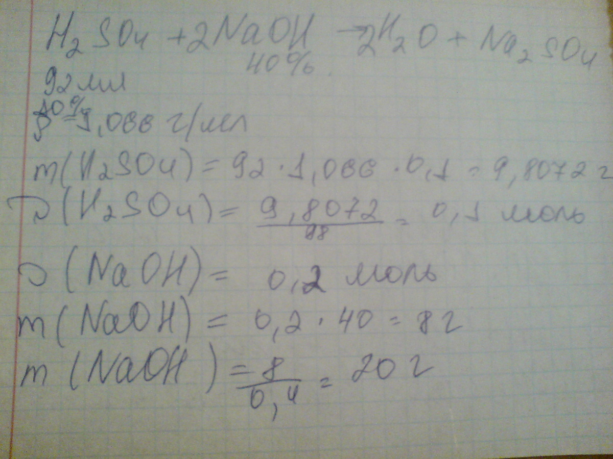 92мл 10%-ного раствора серной кислоты (плотность 1.066 г/мл) нейтрализовали 40%-ным раствором гидроксида натрия. Масса затраченного на нейтрализацию раствора гидроксида натрия равна__ г.