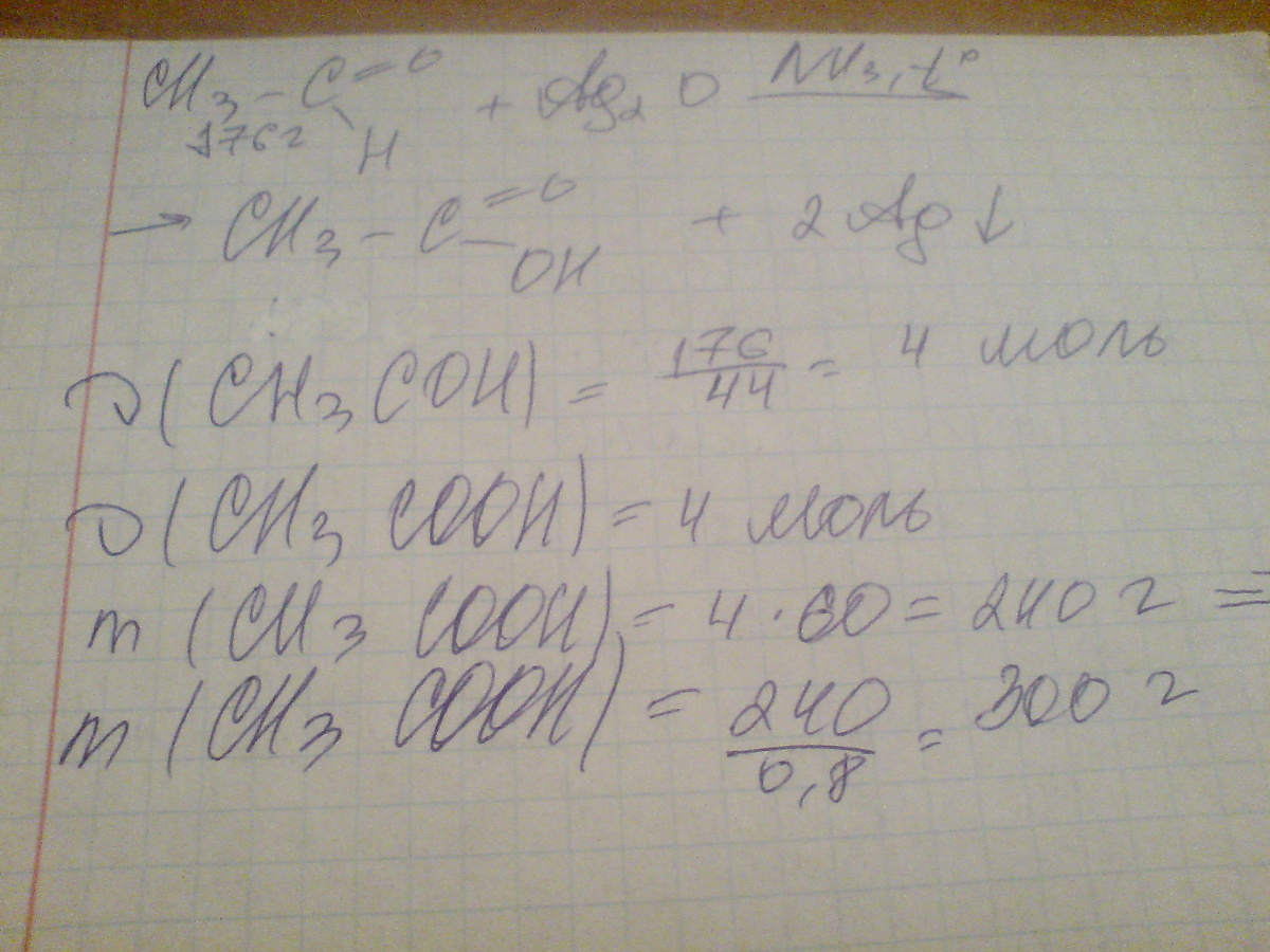 Масса 80%-ной уксусной кислоты, которую можно получить при окислении 176г уксусного альдегида, равна ____г.