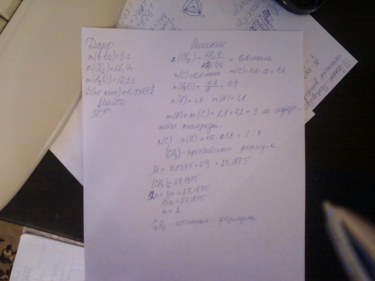 При сгорании органического вещества массой 9 г получили 26,4г углекислого газа и 16,2 г воды. Плотность паров вещества по кислороду равна 0,9375. Установите молекулярную формулу вещества.