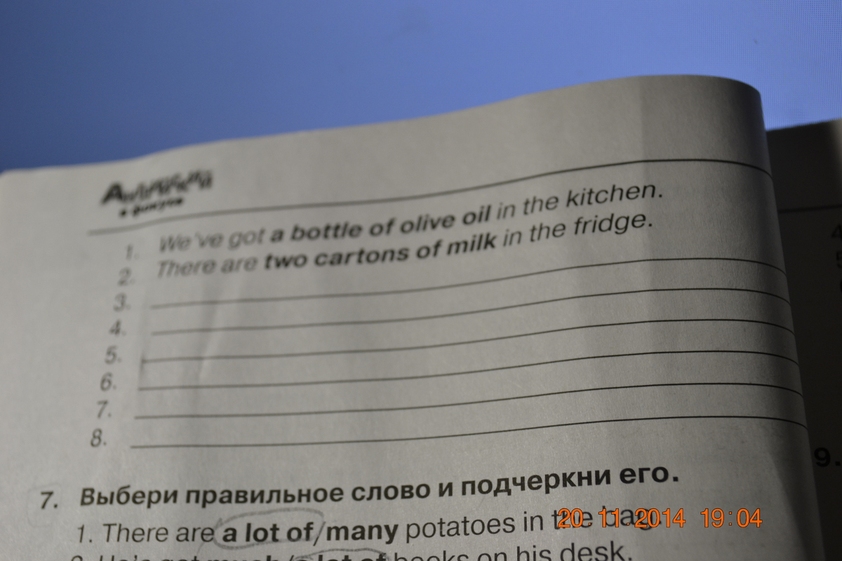 У него в холодильнике есть бутылка молока/кока колы/оливкового масла.