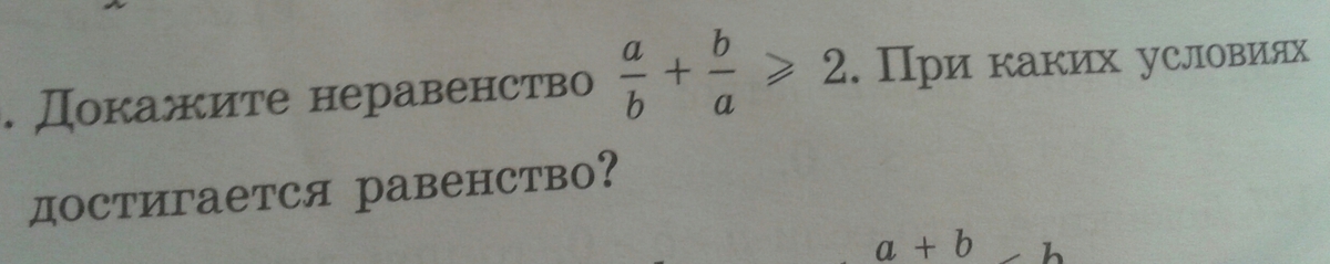 a/b +b/а (так как там знаки меняются везде, я буду писать словами) больше либо равно 2