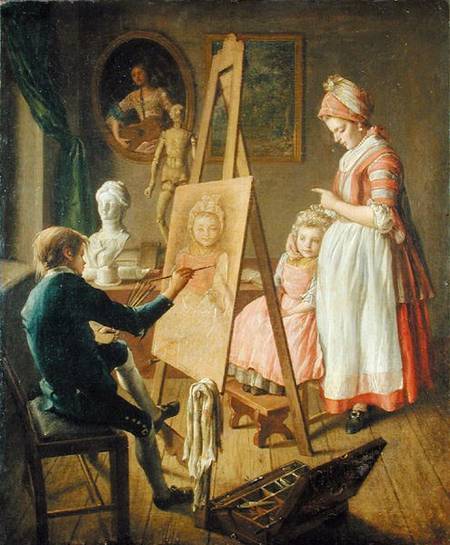 Картина выражает настроение художника и написана яркими красками. Все герои нарисованы в блёклых тонах, но возникают воображения что герои грустные, но в тоже время они рады особенно девочка. В Мастерской художника есть статуи и портреты знаменитых людей.