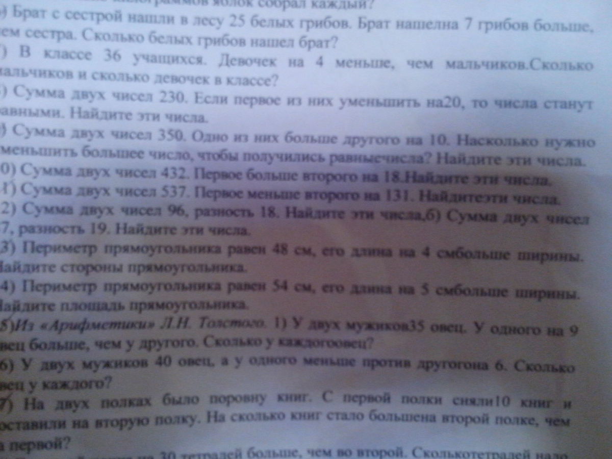 5.Брат с сестрой нашли в лесу25белых грибов брат нашел на 7грибов больше чем сестра сколько белых грибов нашел брат?