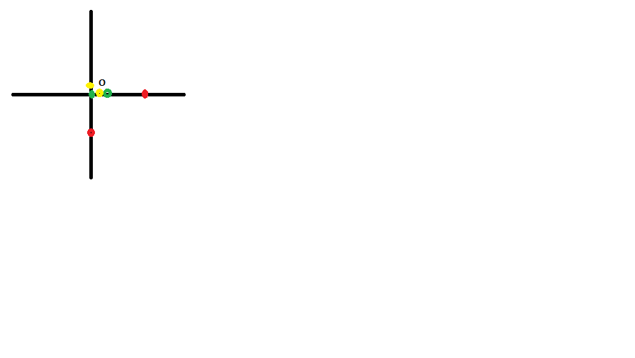 желтые, когда оба пройдут еще 2,5км- это 2,5 и 2,5 от О