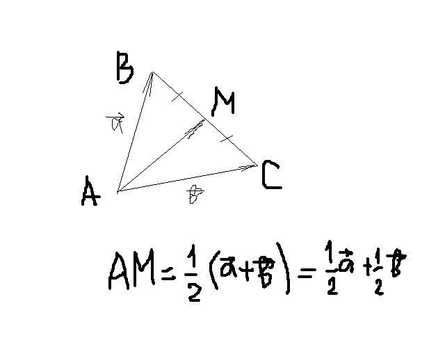 если по теореме пар-ма векторы c = a + b, то тут половине их суммы (треугольник можно мысленно продолжить)