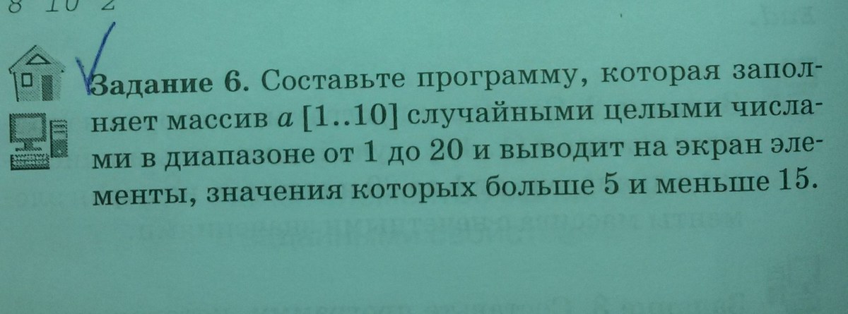 if (a[i]>5) and (a[i]<15) then write(a[i],' ');