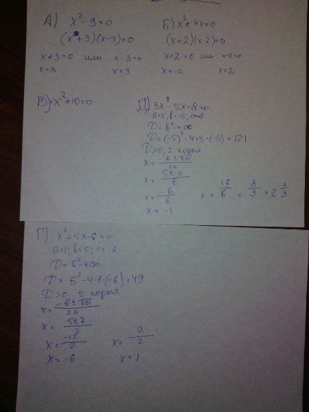 Г) х в квадрате+5х-6=0