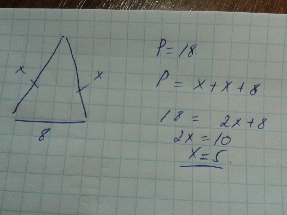 периметр равнобедренного треугольника равен 18 см. Основание треугольника 8 см.Найдите боковую сторону треугольника
