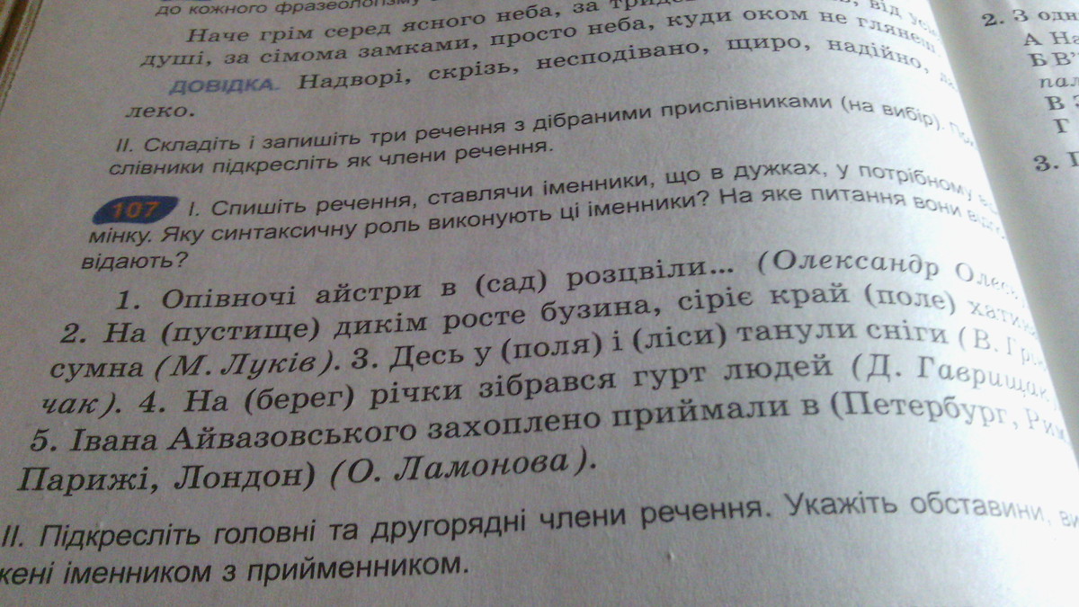 Десь у полях(М.в)і лісах (М.в)танули сніги .На березі (М.в.)річки зібрався гурт людей. Івана Айвазовського захоплено приймали в Петербурзі.Римі.Парижі.Лондоні .(М.в.)