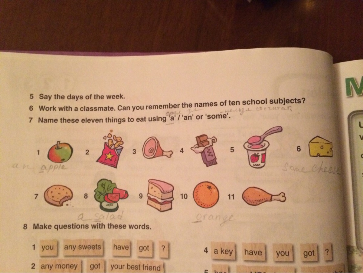 8) some vegetables/ a salad