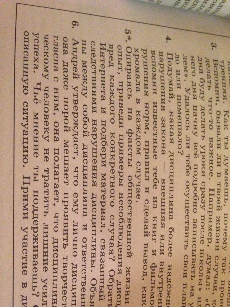 Андрей утверждает , что ему лично дисциплина не нужна , она даже порой мешает проявить творчество . Анна не согласна с ним , она оплошает , что дисциплина помогает творческому человеку не тратить лишние усилия и добиваться успеха . чье мнение ты поддерживать ? обсуди ..