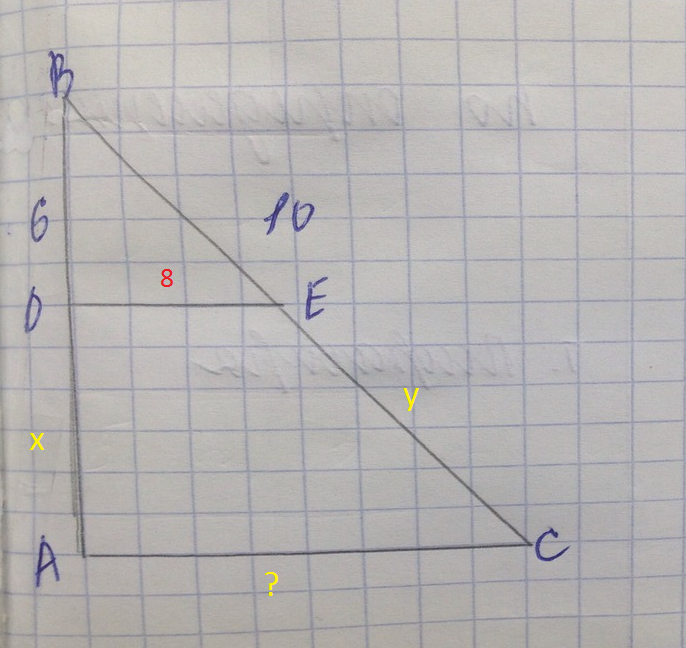 AC²=ВС²-АВ²=(10+у)²-(6+x)²=(10+y)²-(6+0,6y)²=100+20y+y²-(36+7,2y+0,36y²)=0,64y²+12,8y+64=(0,8у+8)² ⇒ АС=0,8y+8