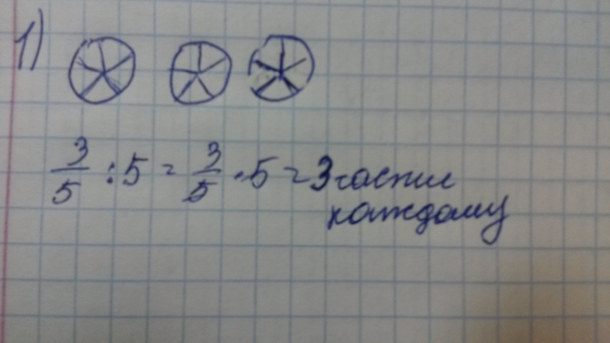 1)Покажите с помощью рисунков и дробей,как можно разделить поровну 3 яблока между 5 детьми?Ребят я решение нашла только не знаю как изобразить с помощью рисунков и дробей помогите