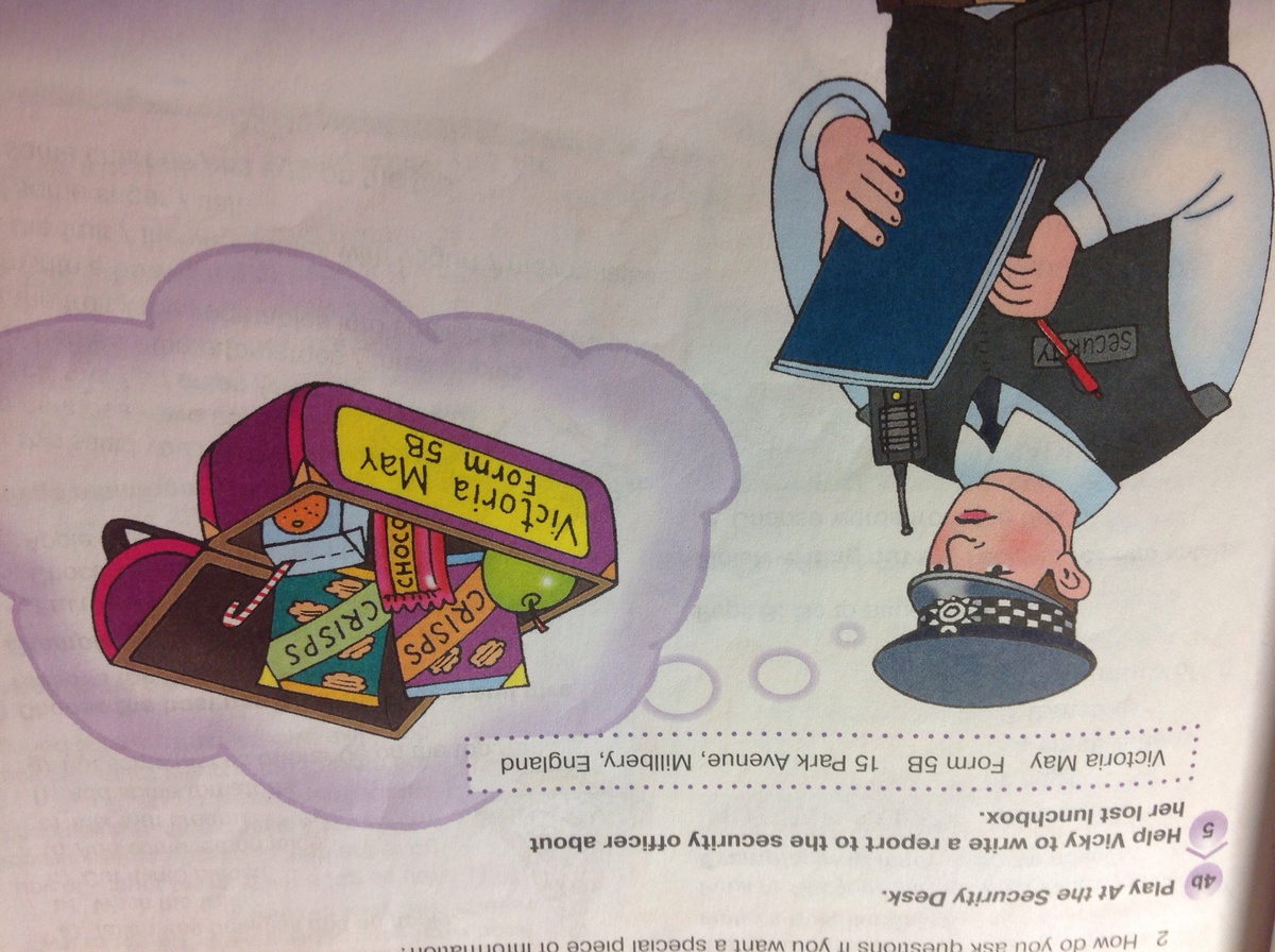 Помогите пожалуйста: Help Vicky to write a report to the security officer about her lost lunchbox. Извините за перевёрнутое фото, не переворачивается