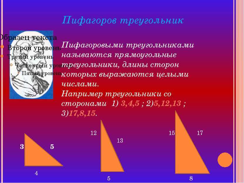 Какие треугольники называются пифагоровыми? Выполните рисунок. Приведите примеры