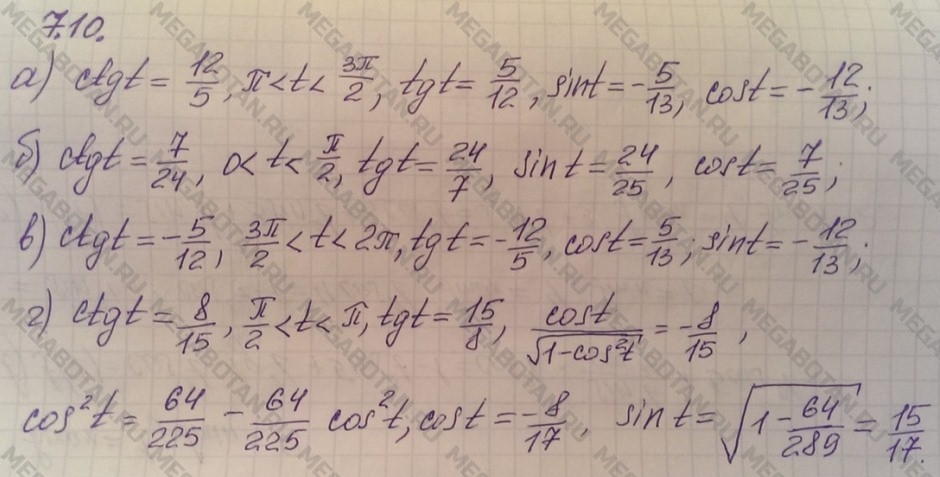 напишите пожалуйста решение,есть ответ,но не понимаю как выходит,хотя бы часть "а",известно ctgt,а остальное нужно найти,если поможете буду очень благодарен)