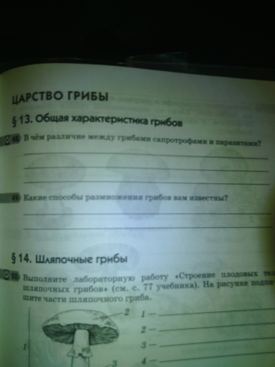 первый ответ полностью переписать, а второй вот так: Грибы размножаются вегетативным, бесполым и половым способом