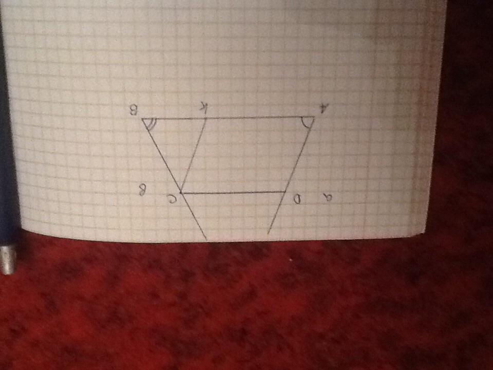 Допустим что мы уже построили трапецию. Перенесём основание СД на АВ так чтобы точка Д перешла в А. АКСД это параллелограмм. Значит точка С находится на пересечении прямой, проходящей через К и параллельной к прямой а, и прямой в, точка Д находится на пересечении прямой а и прямой паралельной АВ. Еще АК=ДС. Вот так. Если не понятно то задавай вопросы:)