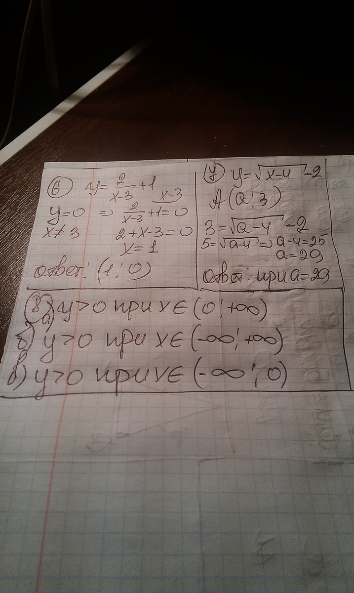 извиняюсь,8 задание а) у>0 при х принадлежащем 0т - 2 до + бесконечности( наверное пора спать)
