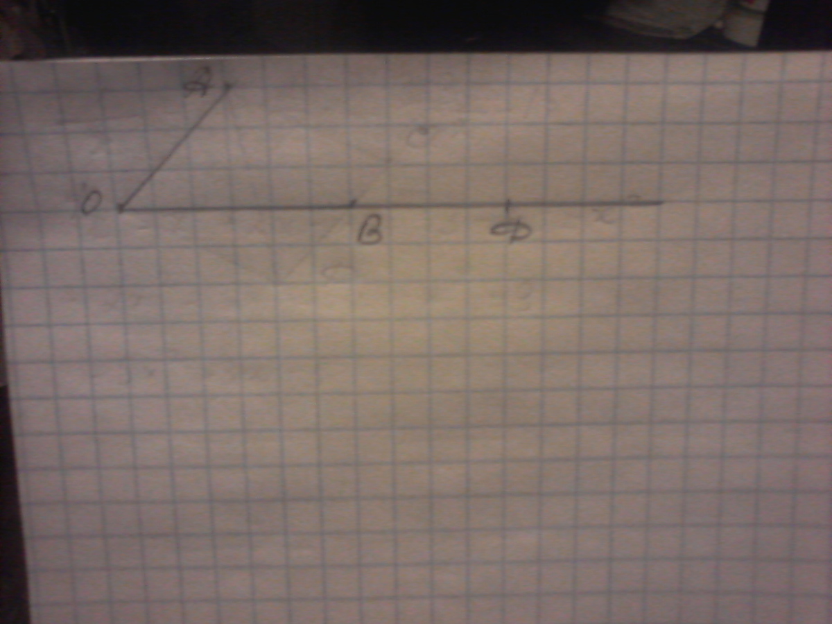 Начиртите острый угол АОВ и на продолжении луча ОВ отметьте точку Д.Сравните углы АОВ и АОД